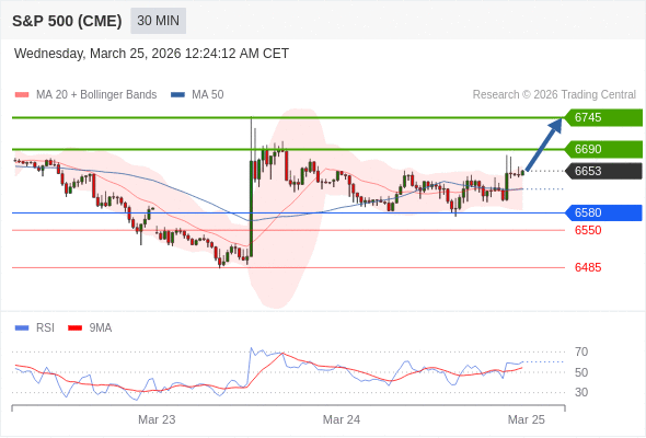 在 6580 之上,看涨,目标价位为 6690 ,然后为 6745 。