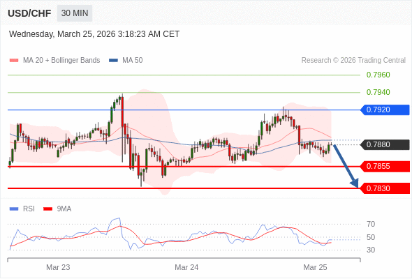 在 0.7920 之下,看跌,目标价位为 0.7855 ,然后为 0.7830 。