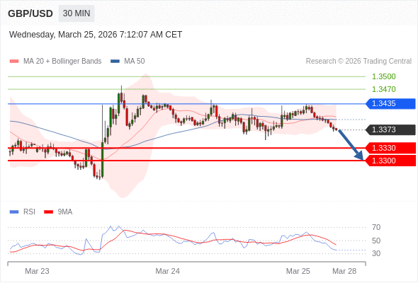 交易策略: 在 1.3435 之下,看跌,目标价位为 1.3330 ,然后为 1.3300 。