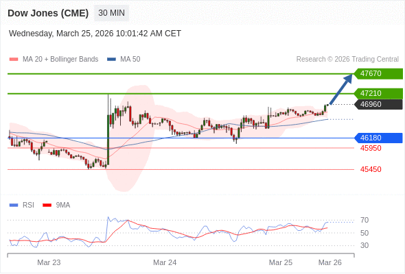 在 46180 之上,看涨,目标价位为 47210 ,然后为 47670 。