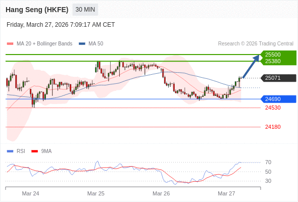 香港恒生指数期货 当日内: 目标位为25380。