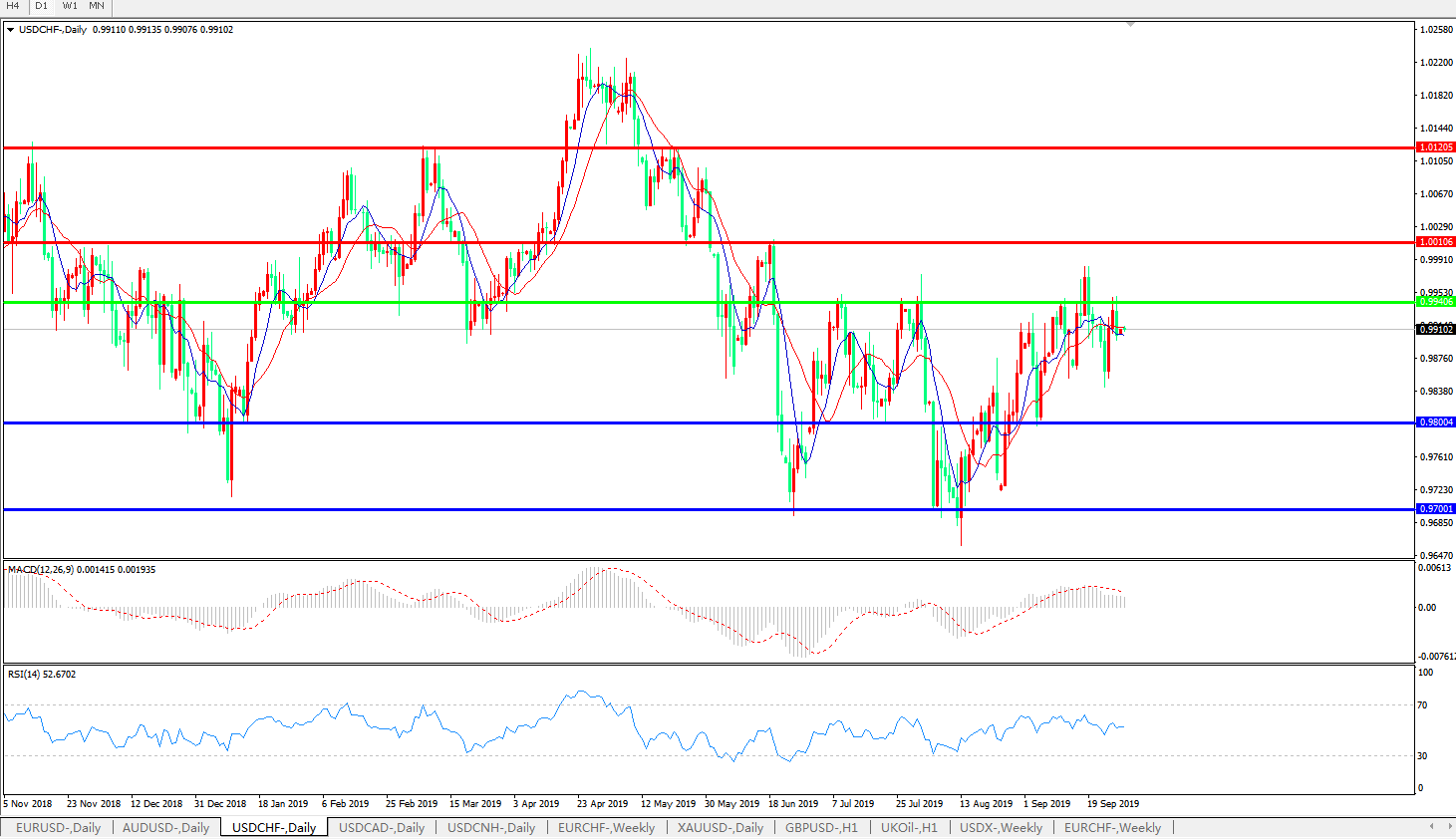 美元兑瑞郎USDCHF 日线图: