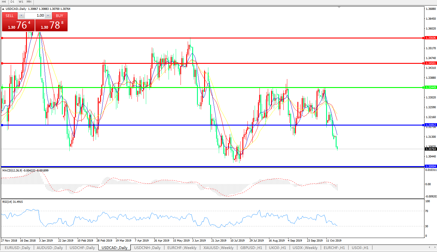 美元兑加元USDCAD 日线图: