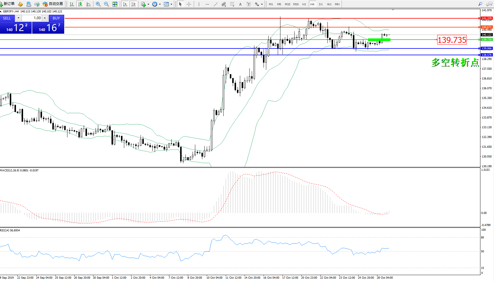 交易策略:139.735上方看涨,目标140.671141.339