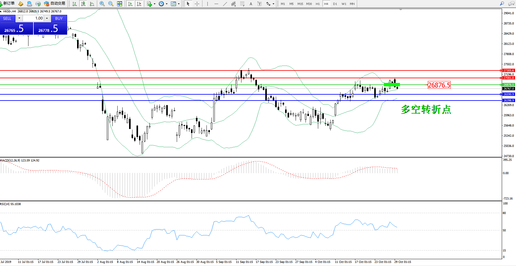恒指HK50 ——4小时K线图显示: