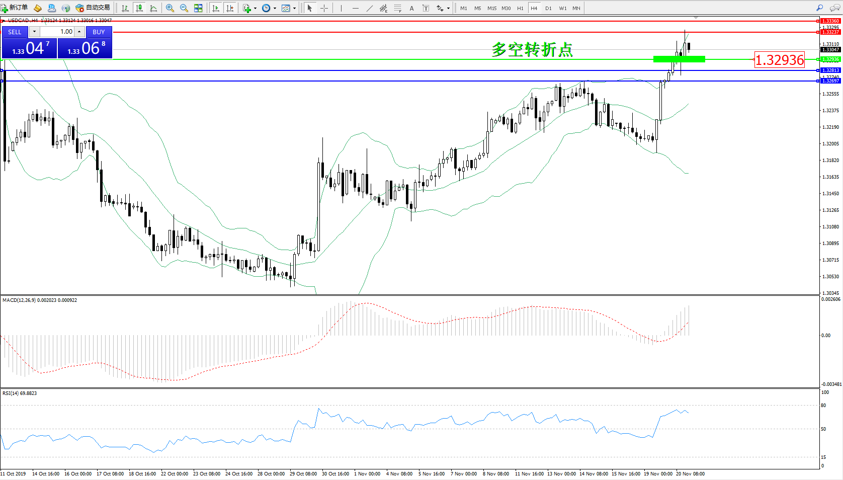 美元加元USDCAD——4小时K线图显示: