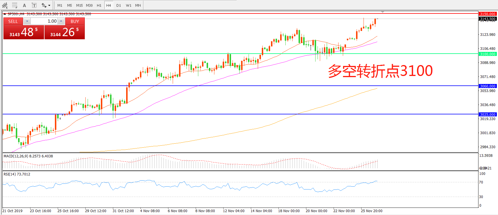 多空转折点:3100.00