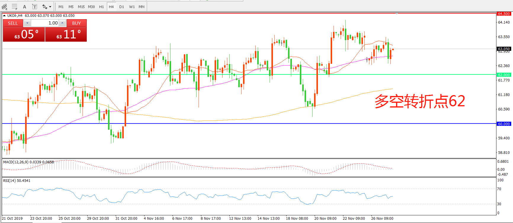 交易策略:在62.00之上看涨,目标64.50    66.00
