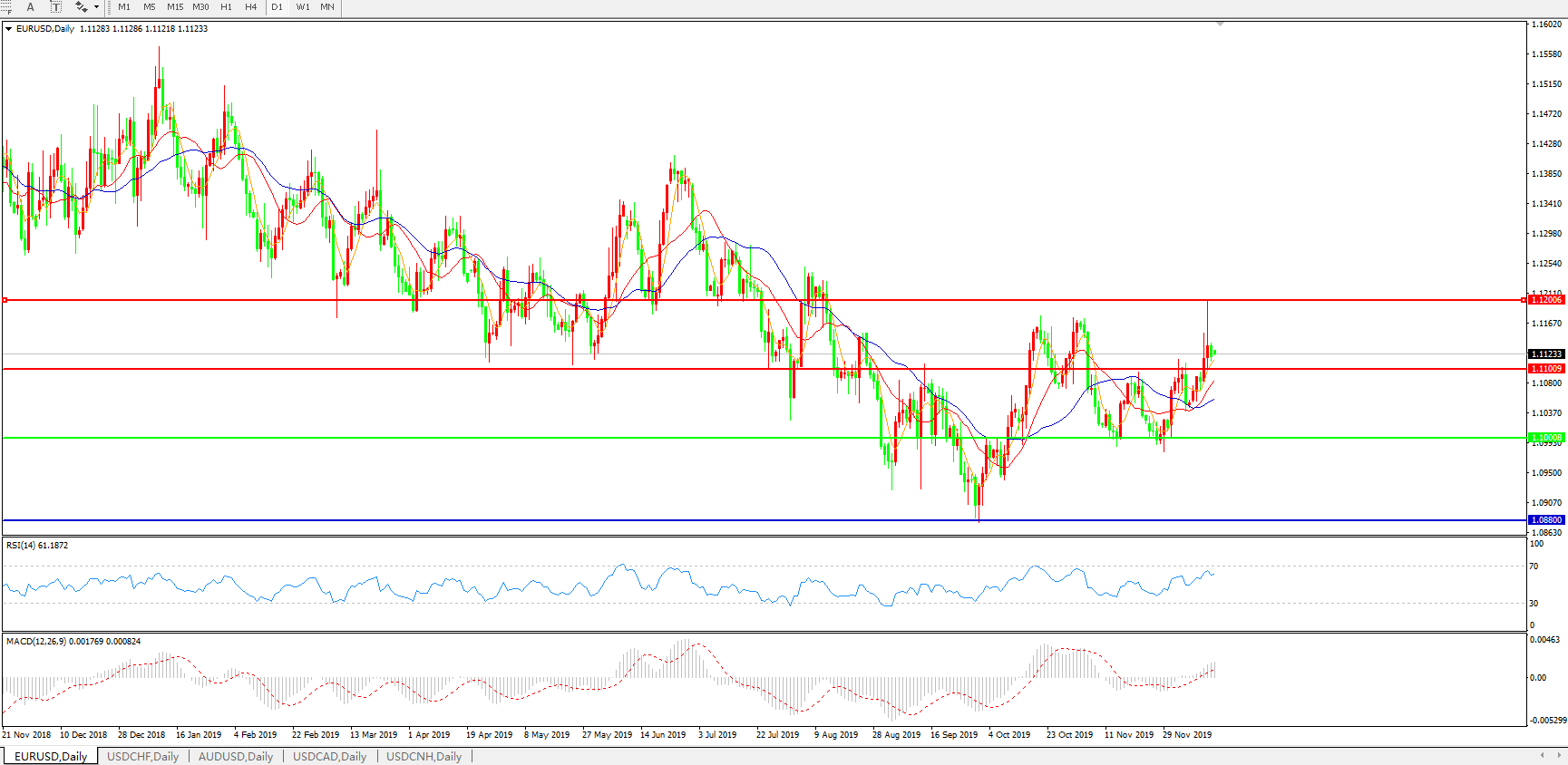 交易策略:1.1100上方看涨,目标1.1200、1.1300