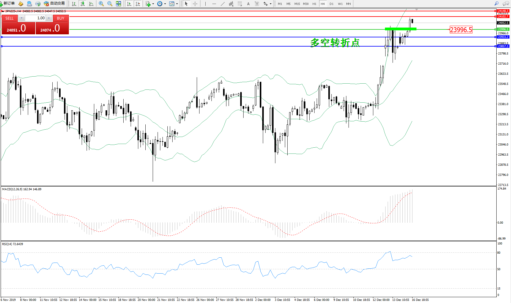 日经225指数1216日(周一)收盘下跌43.60点,跌幅0.18%,报23979.50点。在首相安倍晋三公布经济刺激措施后,日本央行本周将维持货币政策不变,也许会按兵不动更长时间。接受调查的45位经济学家均预测,日本央行在本周四结束为期两天的政策会议时料决定按兵不动。并且自4月份以来首次出现多数受访经济学家预期日本央行的下一步政策行动将是收紧政策,表明政策预期自10月份调查以来已经发生急剧转变。