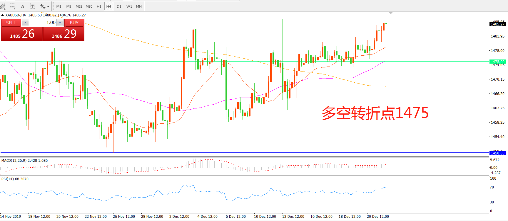 多空转折点:1475.00