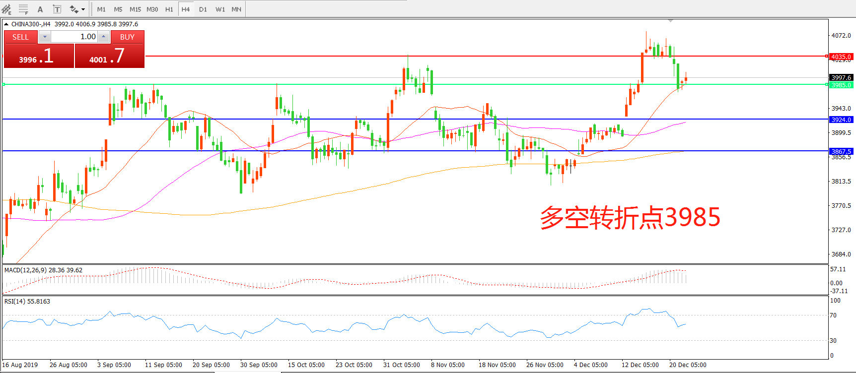 多空转折点:3985.00