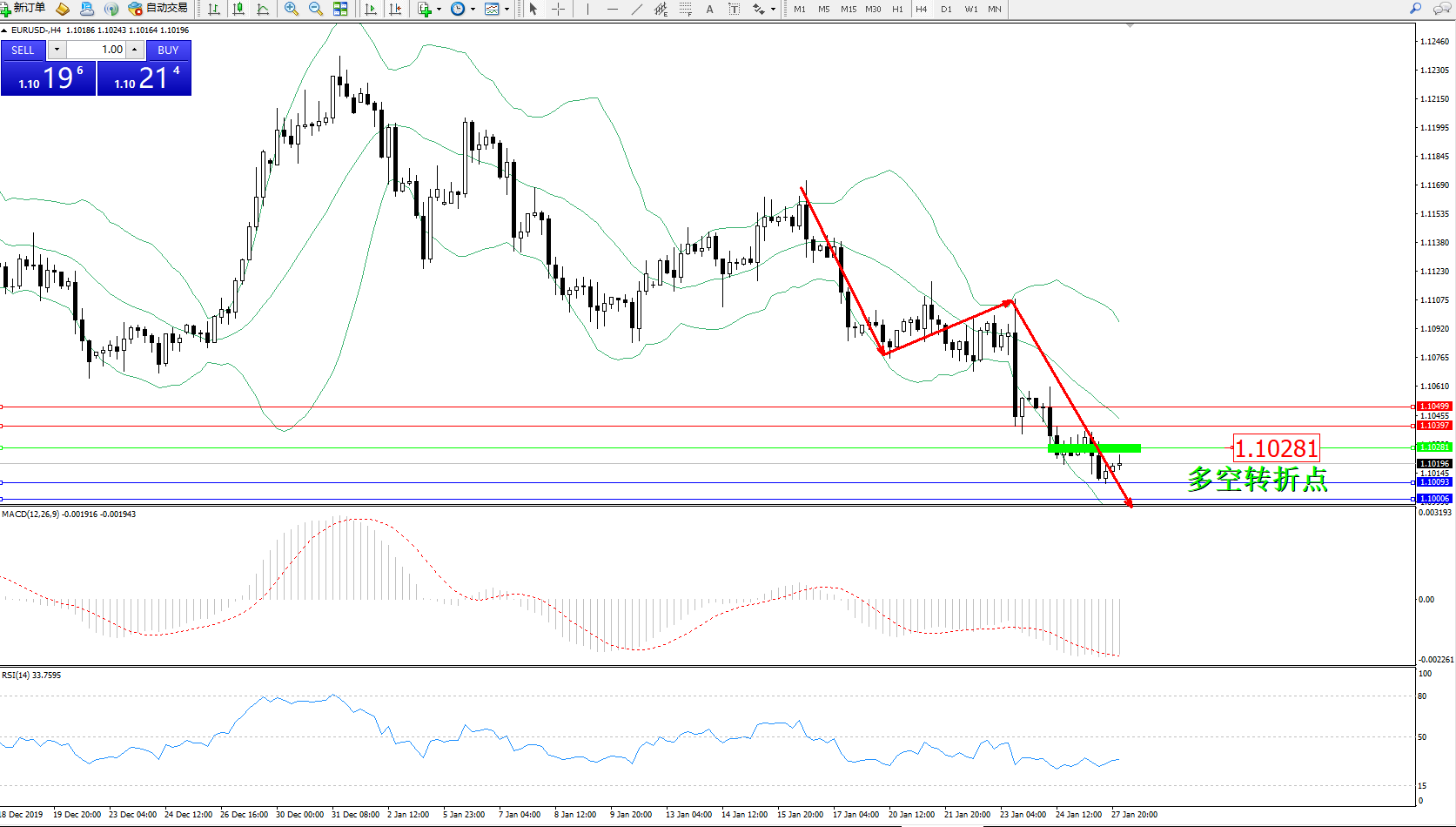 欧元美元EURUSD——4小时K线图显示: