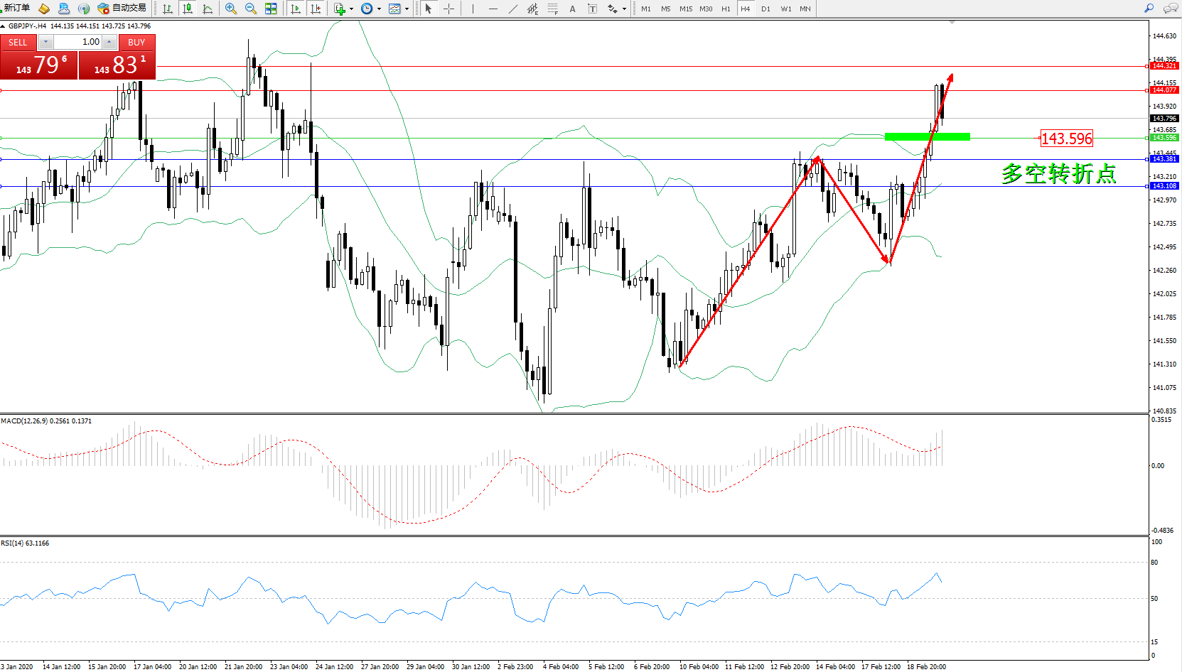 交易策略:143.596上方看涨,目标144.077144.321