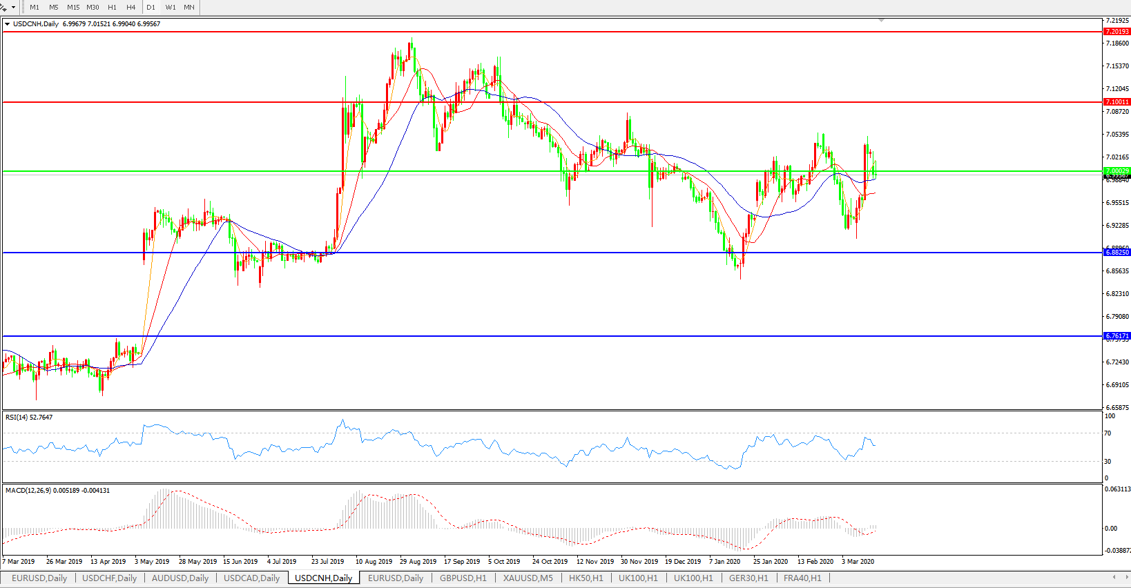 交易策略: 在7.0000之上,看涨,目标价位为7.1000,然后为7.2000。