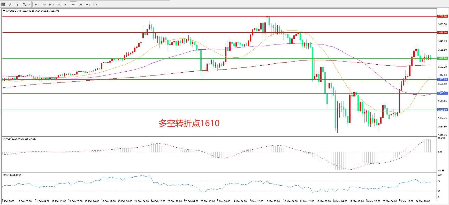 近期金价上涨的主要原因是美联储隔夜宣布无限量QE,大大缓和了流动性危机,此前,投资者因为流动性紧缩而抛售金价的行为受到抑制,而黄金作为避险品种,重新得到市场的青睐。在3月24日最新的报告中,高盛表示,金价正处于拐点,在未来12个月可能触及1800美元,高盛还直接告诉客户,买金的时机到了。