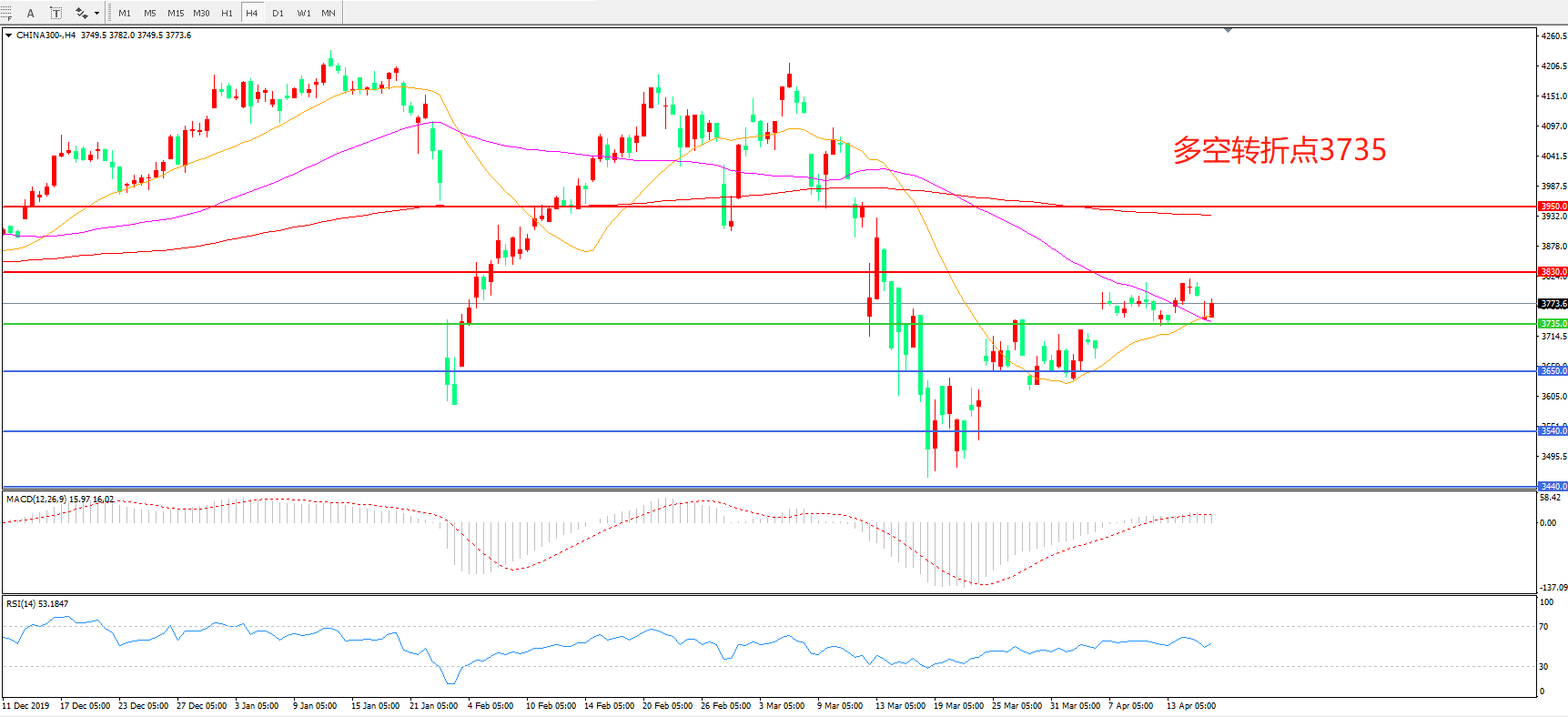 沪深300  CHINA 300   4小时图