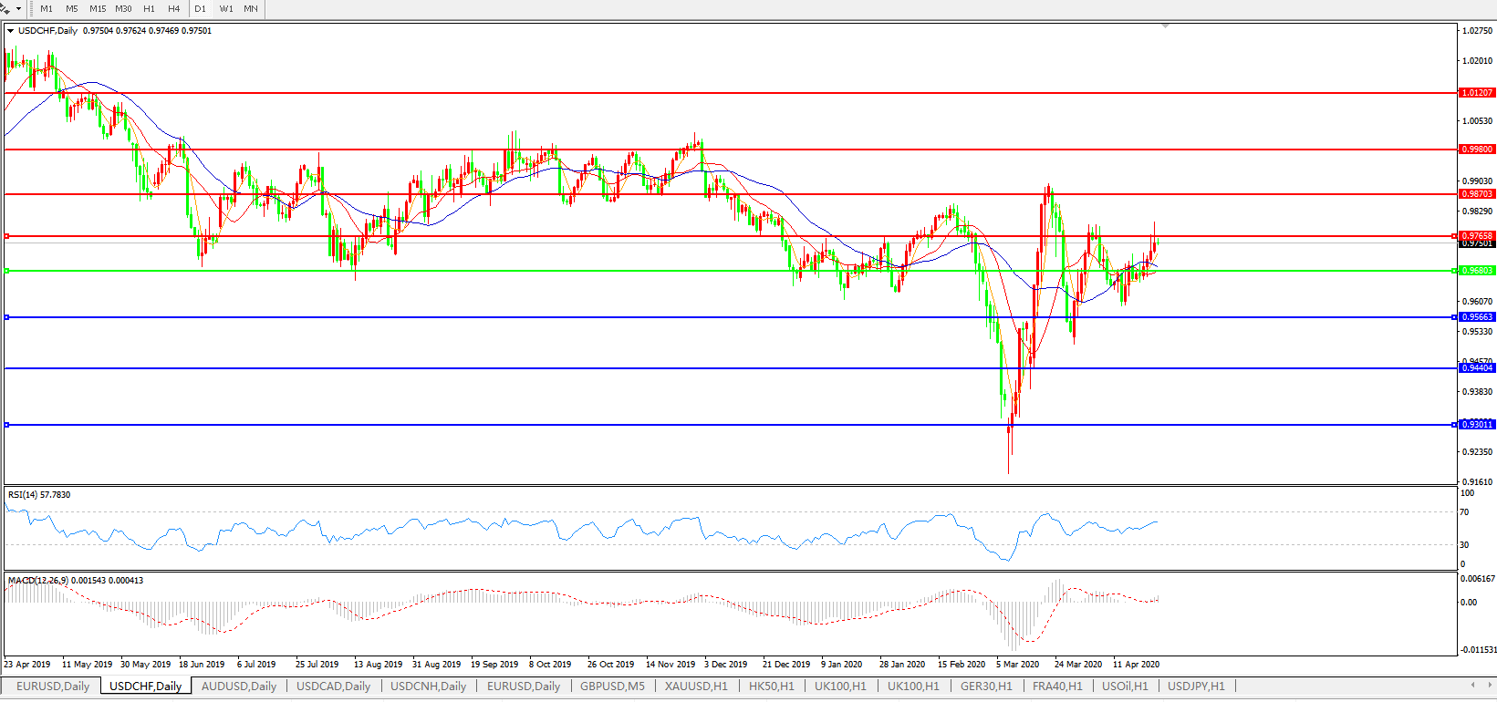 备选策略:0.9680下方看跌,目标0.9565、0.9440