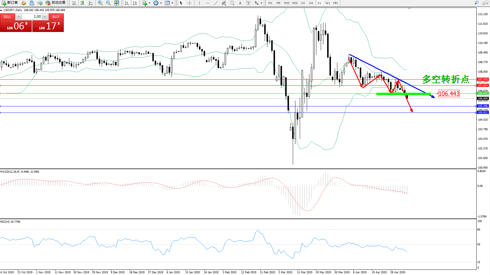 多空转折点:106.443