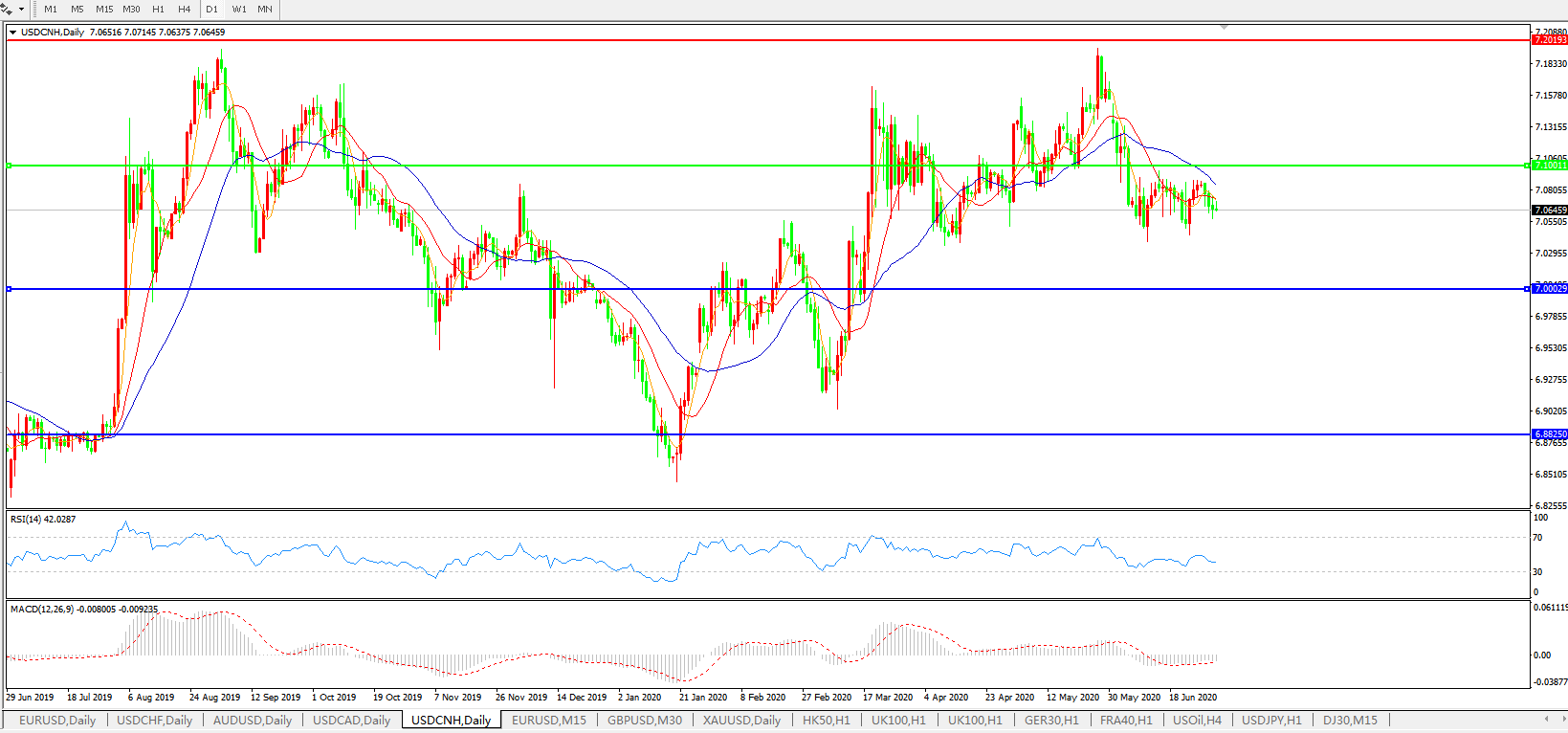 备选策略: 在7.1000之上,看涨,目标价位为7.2000,然后为7.3000。