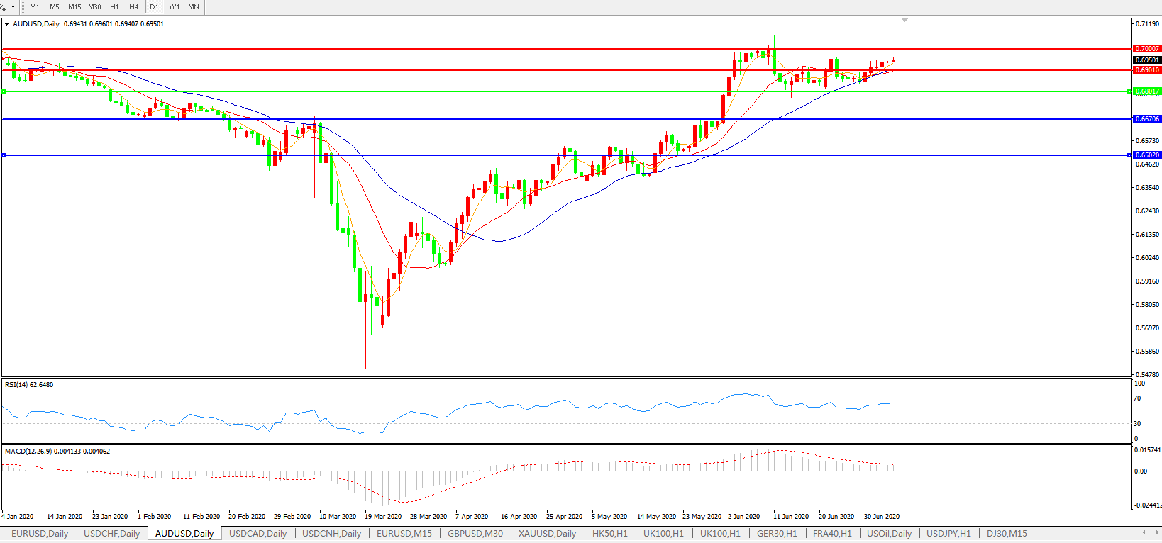 澳元兑美元AUDUSD    日线图: