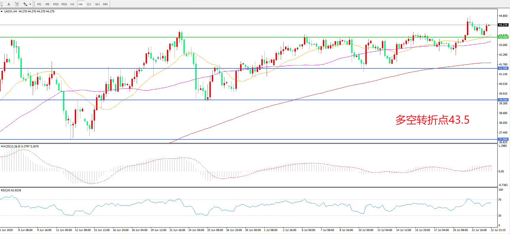 交易策略: 在43.50之上看涨,目标47.00 50.00