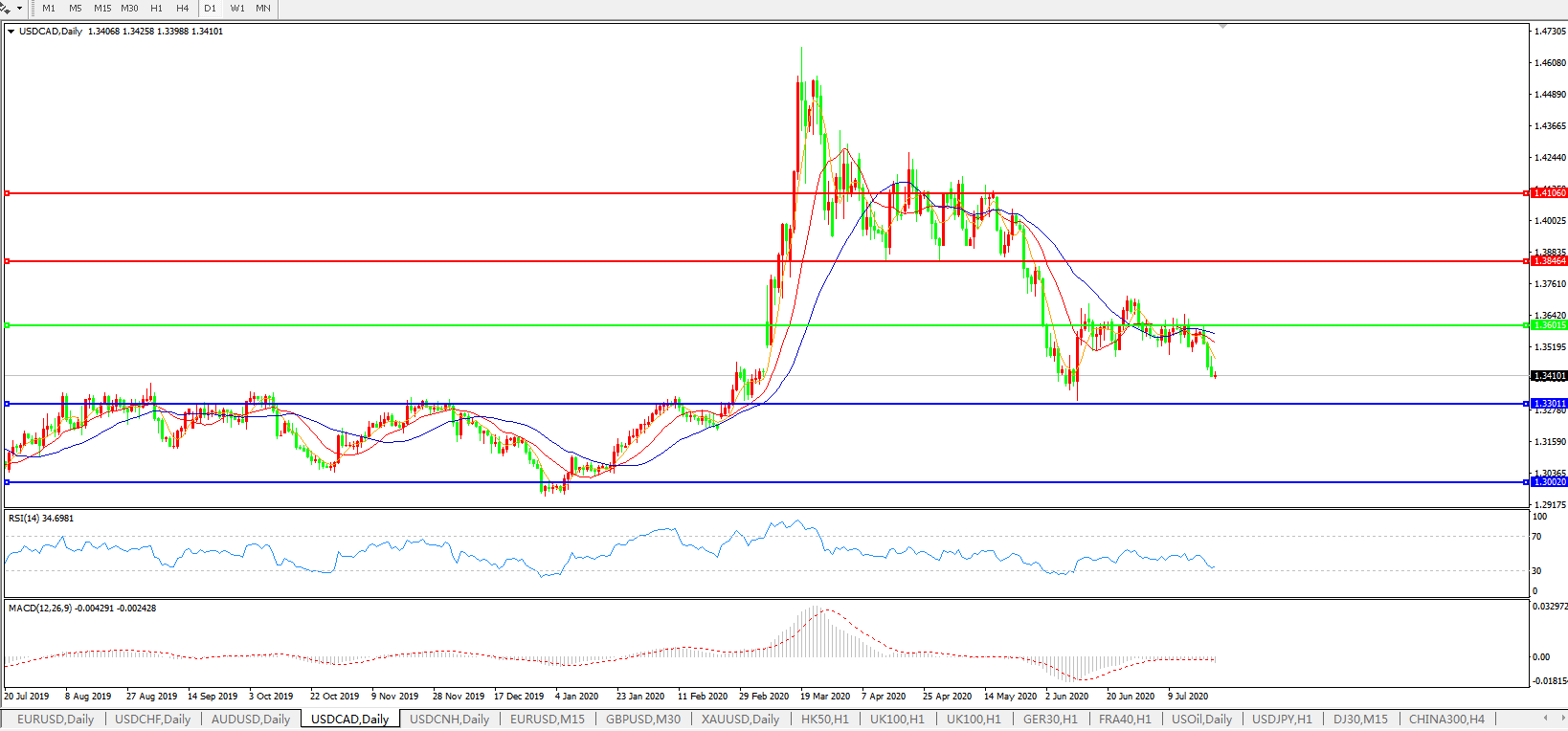 美元兑加元USDCAD 日线图: