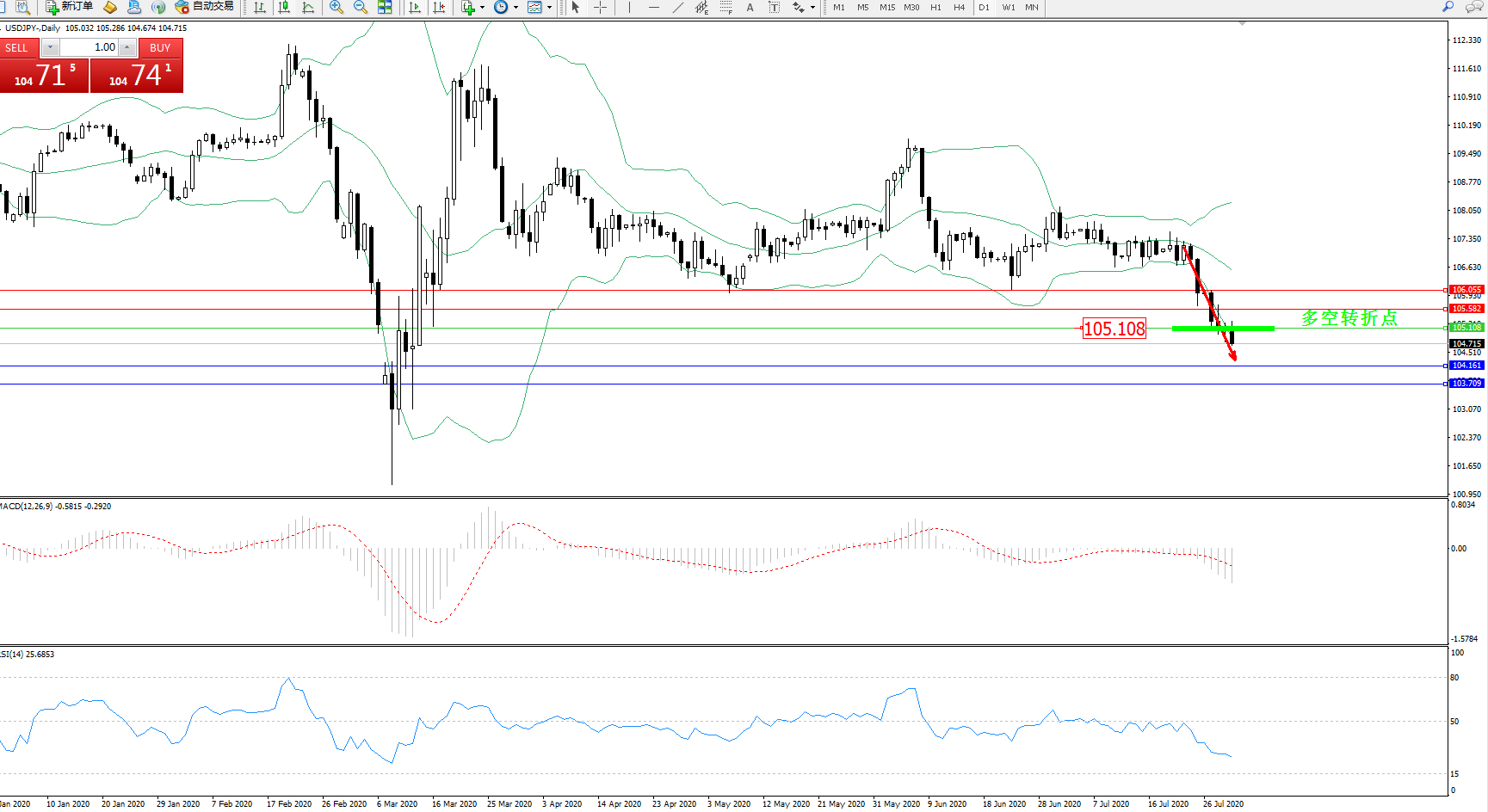 多空转折点:105.108