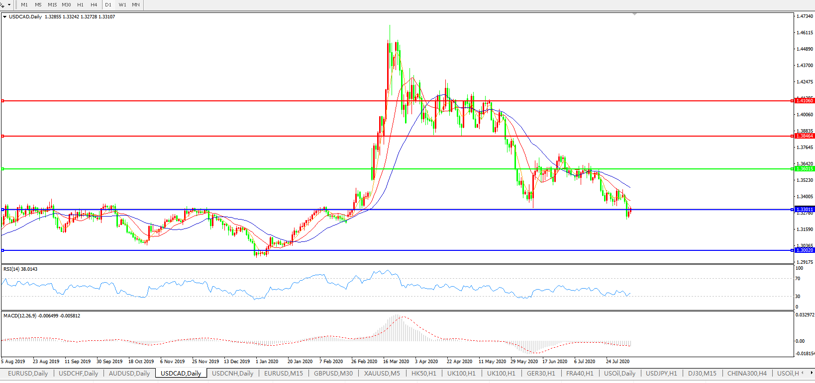 美元兑加元USDCAD    日线图: