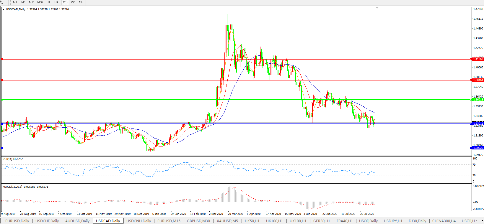 美元兑加元USDCAD 日线图: