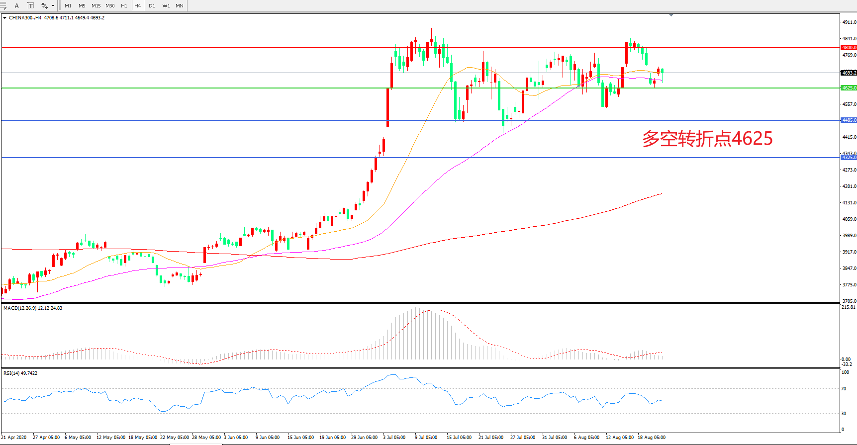 多空转折点:4625.00