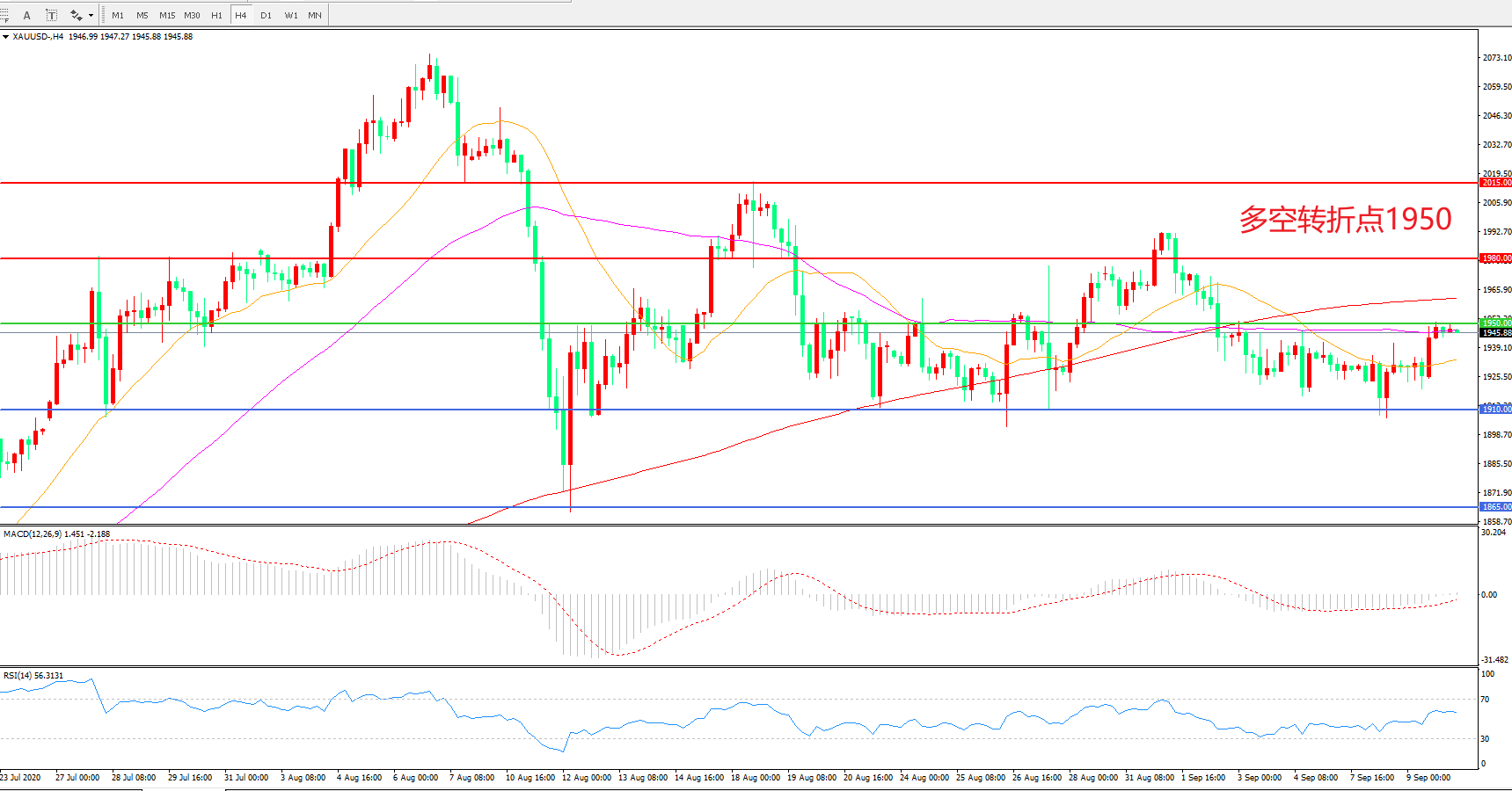 多空转折点:1950.00