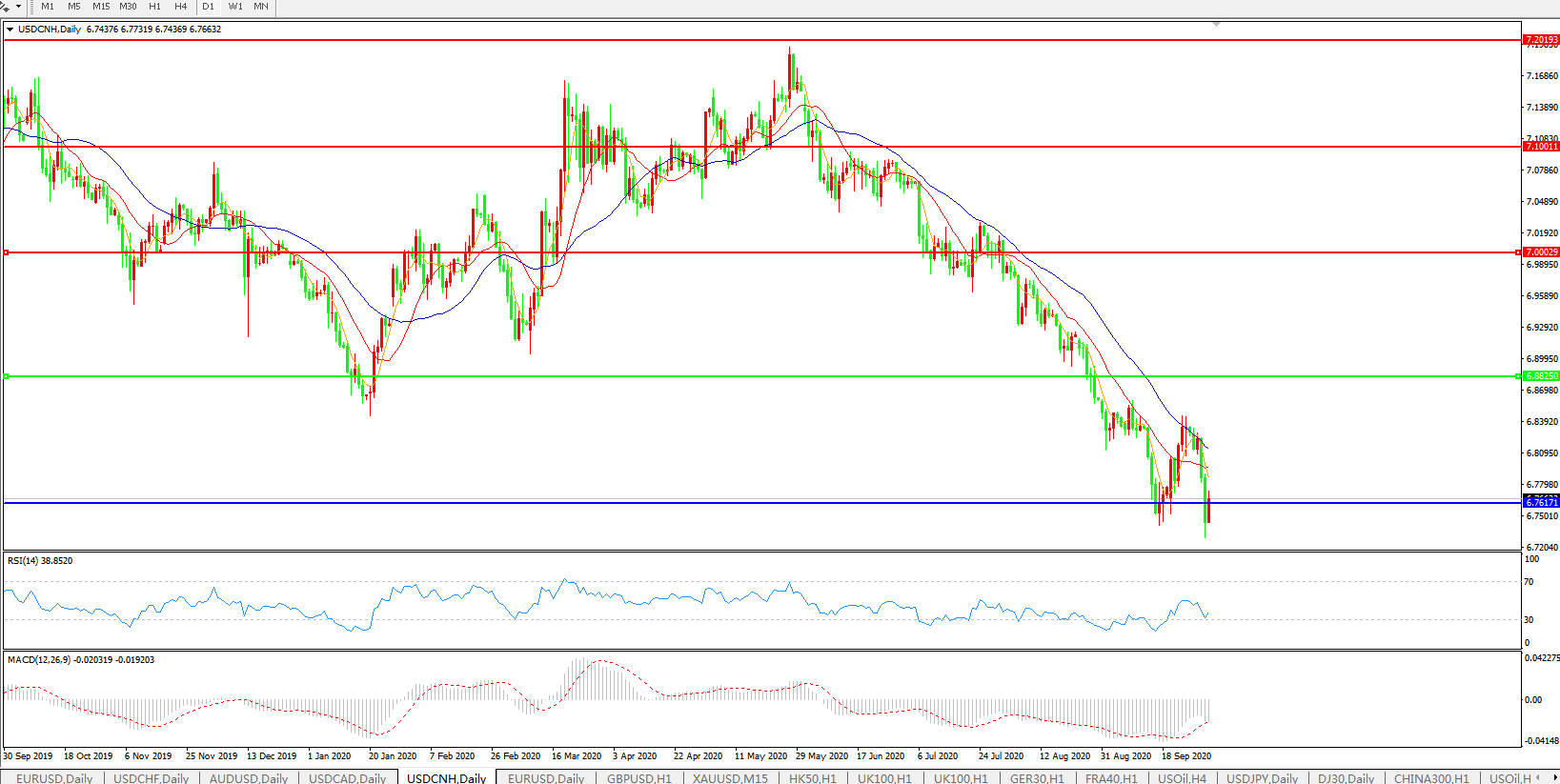 美元兑人民币USDCNH 日线图:
