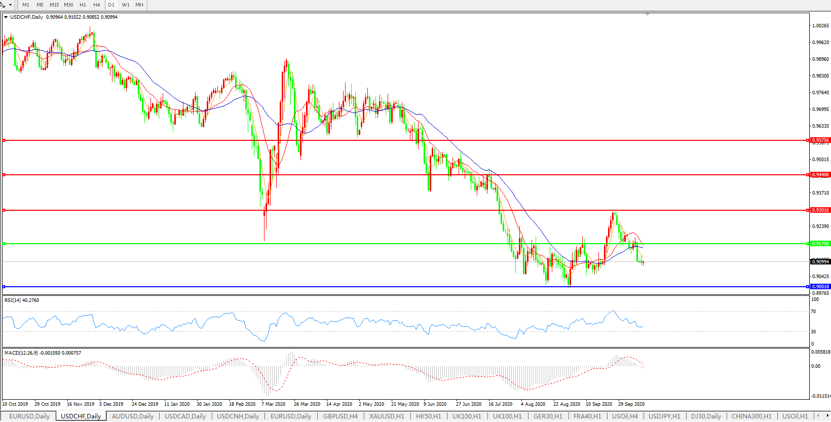 美元兑瑞郎USDCHF 日线图: