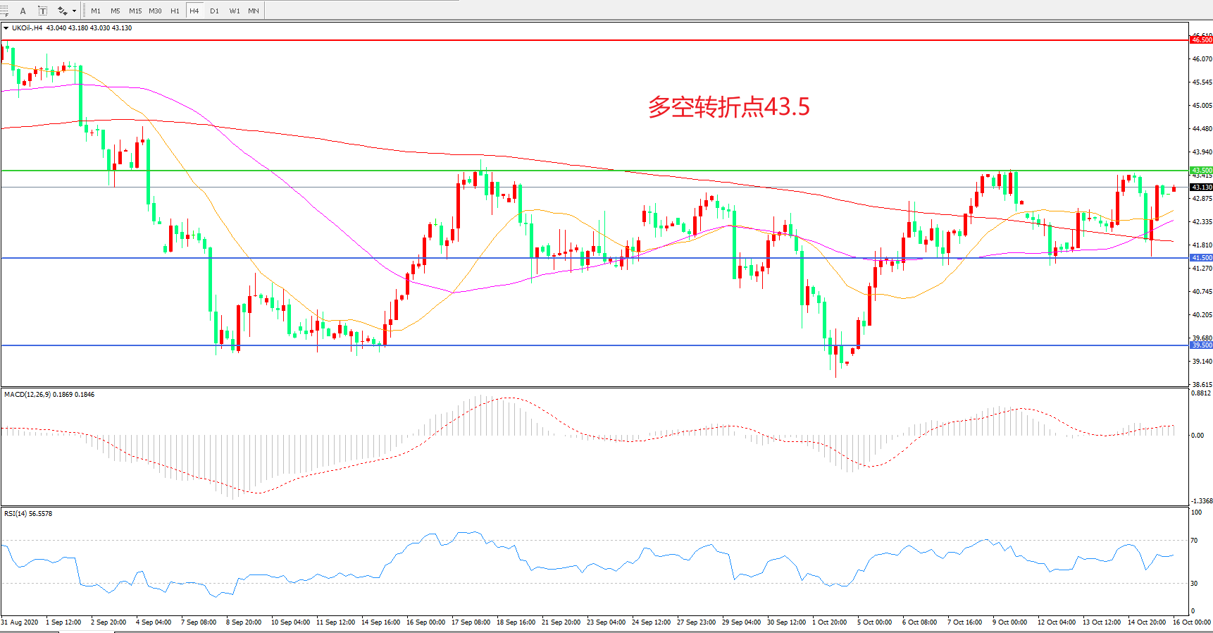 周四(10月15日),原油市场上演深V大反转! 欧洲二次疫情加剧,英法等国防疫举措升级令市场风险情绪恶化,美国WTI原油一度跌超4.4%,但EIA数据表现亮眼,超过市场预期降幅210万桶,市场情绪好转,美油大幅反弹,收报41.21美元/桶。