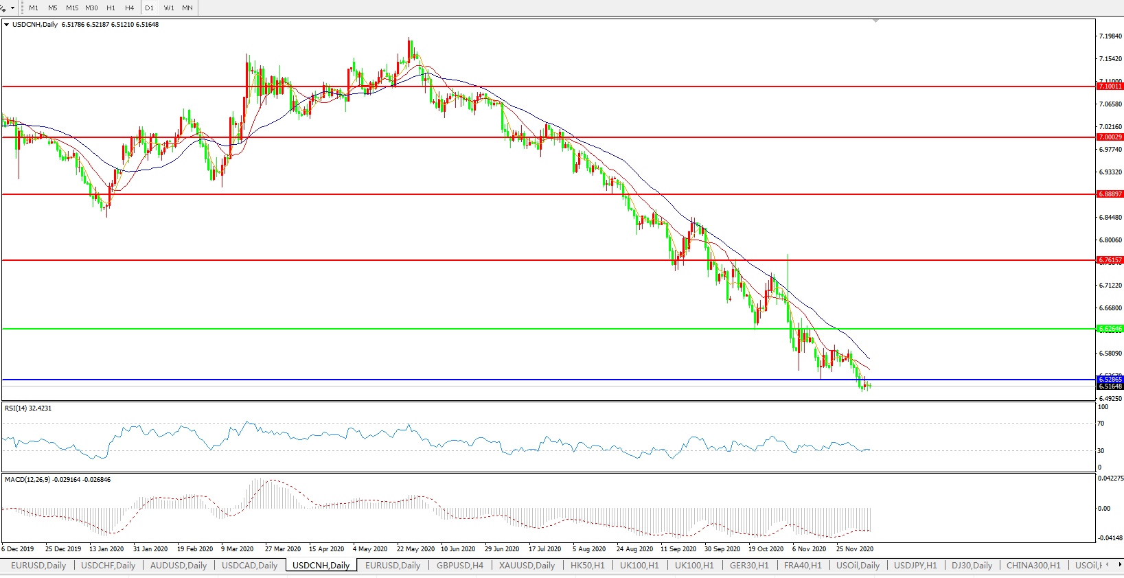 备选策略: 在6.6265之上,看涨,目标价位为6.7615,然后为6.8889。