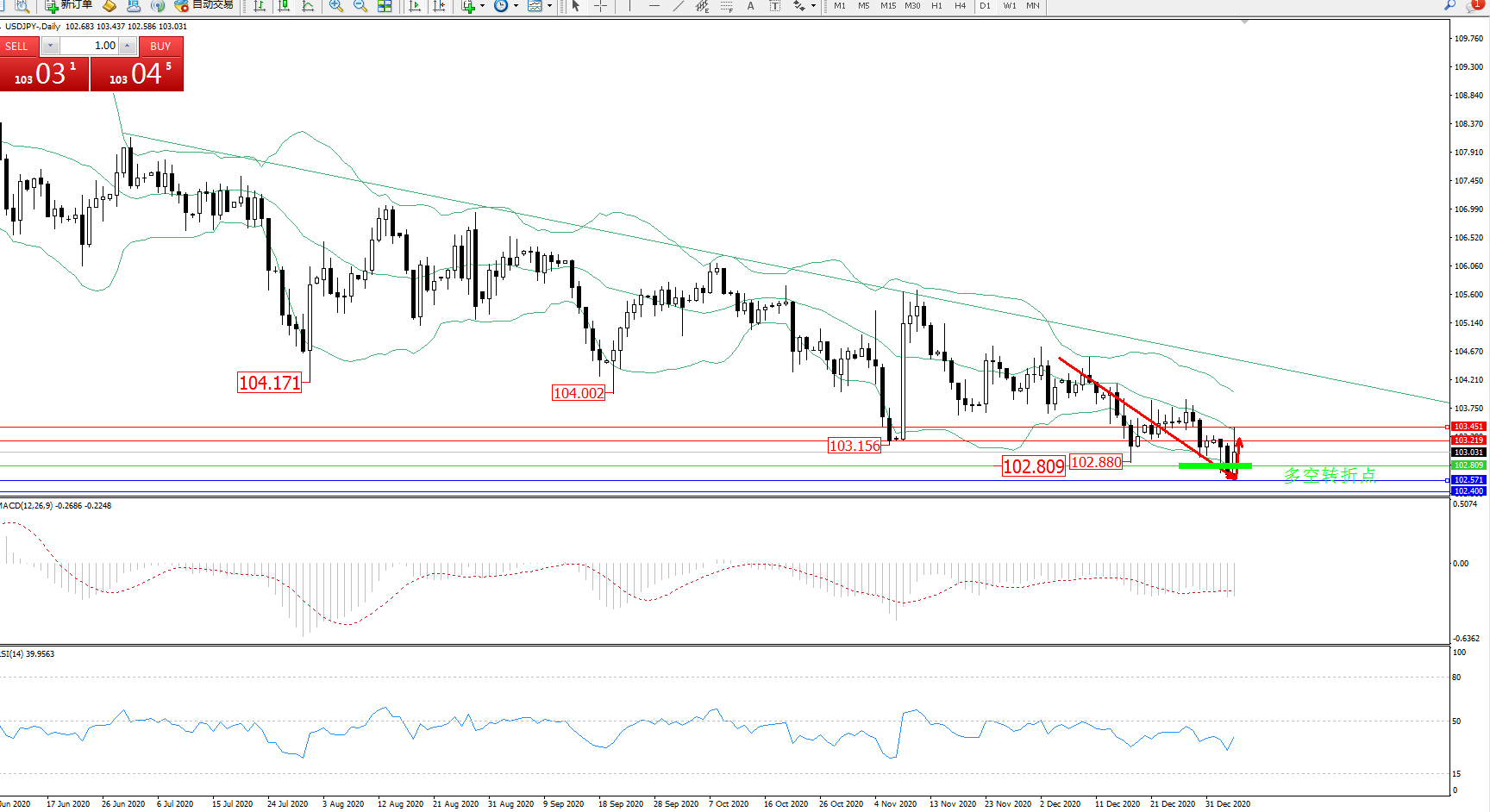 美元兑日圆底部回升至103.022附近,日元在东京一度短暂触及1美元兑102.59日元,迫使日本出口商更接近出现亏损的水平,而它们已经在面对需求因疫情而减少的局面。根据日本内阁府的报告,103水平被视为保持非制造商盈利能力的关键水平。据报告称,100.20水平被大型出口商视为盈利和亏损的临界水平。100日元对日本首相菅义伟而言显然是一个关键水平。据日经新闻上个月报道,他去年指示财务省官员避免日元升至该水平以上。如果日元开始再次升值,日本政府官员可能会增加他们的口头干预,而菅义伟本人甚至可能会出手阻止涨势。而如果日元升值过快,日本财务省、日本央行和日本金融厅召开三方会议则将是政府可能出手的标志。