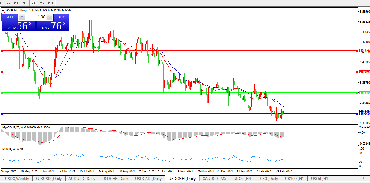 备选策略:在6.3650之上,看涨,目标价位为6.4100,然后为6.4550。