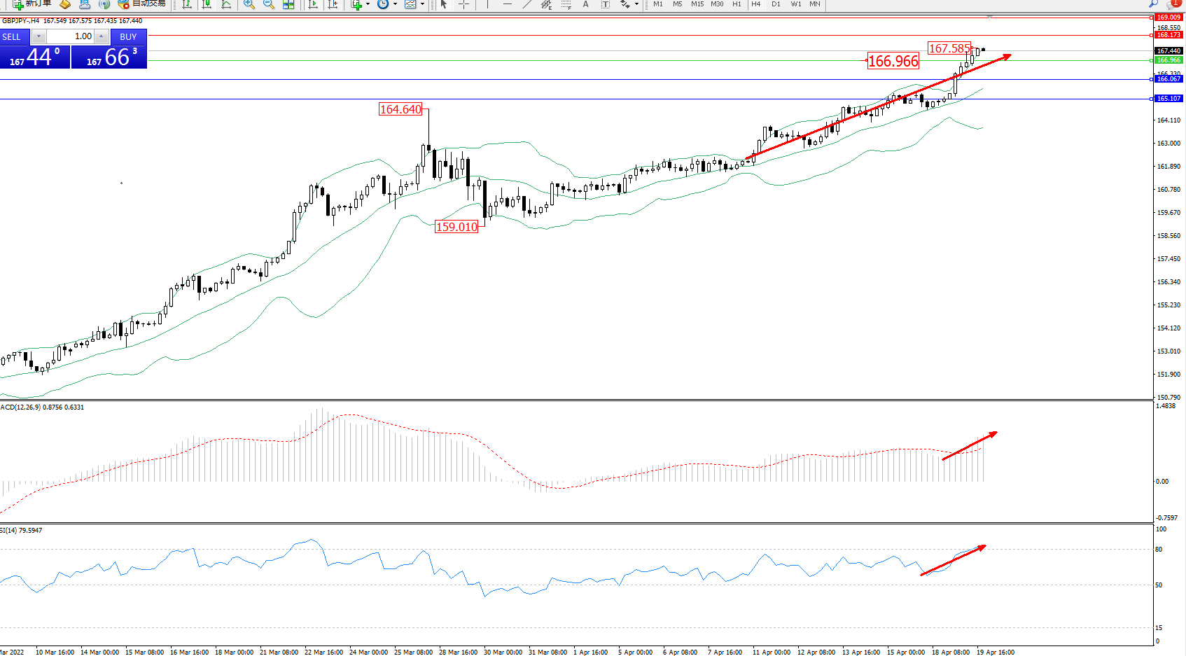 交易策略:166.966上方看涨,目标168.173、169.009