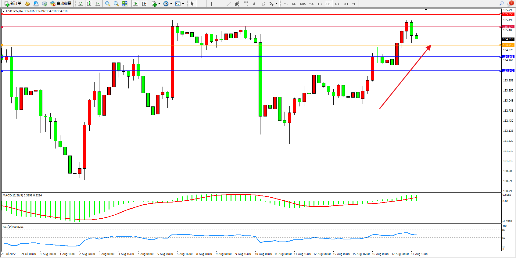 交易策略:134.719上方看涨,目标135.274、135.653