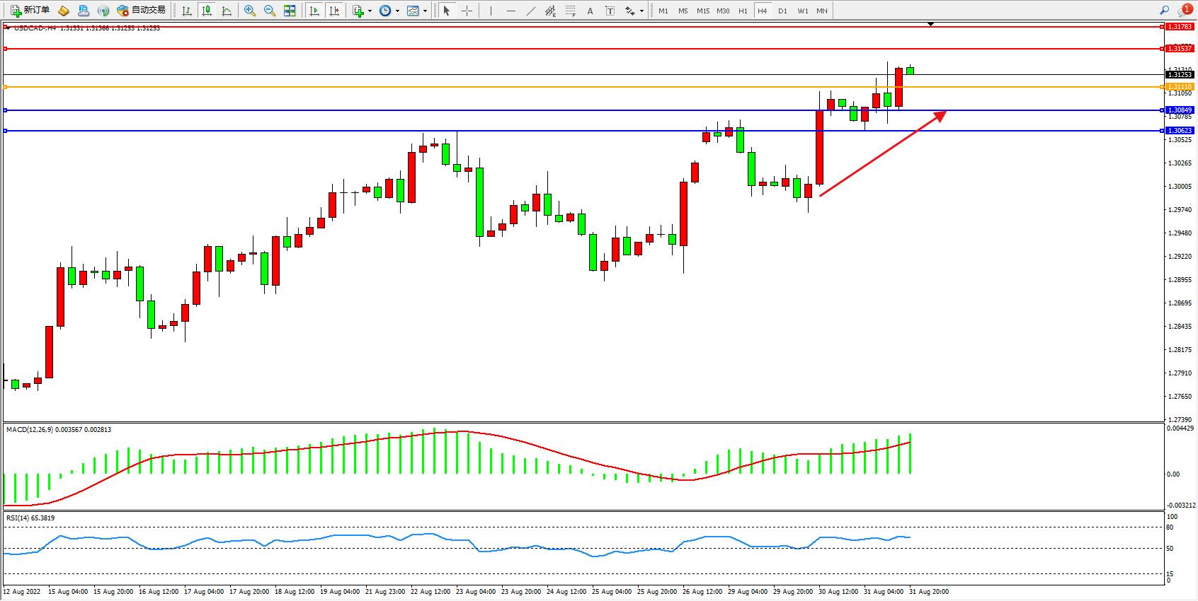 美元兑加元维持1.31110附近震荡,加拿大统计局公布的数据显示,受企业库存投资增加的推动,加拿大第二季度经济折合成年率增长3.3%,低于分析师预期。加拿大统计局表示,6月实际GDP较5月上升0.1%,符合预期,而7月GDP可能小幅下降0.1%。