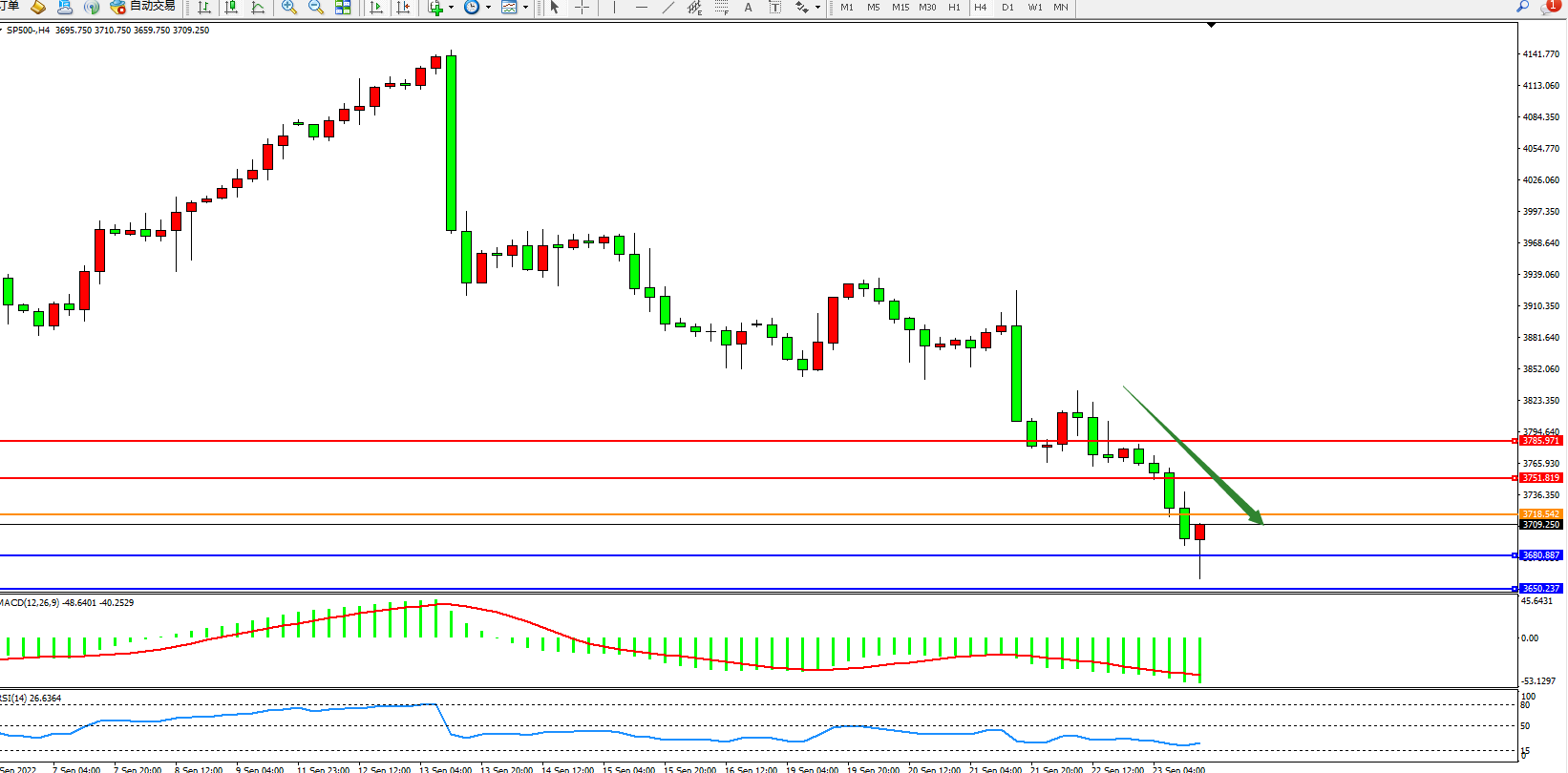 标普500指数9月23日(周五)收盘下跌62.39点,跌幅1.66%,报3695.60点;美国PMI数据美国企业9月份产出连续第三个月下降,如果排除2020年初的大流行封锁,这是全球金融危机以来经济最疲弱的一个季度。