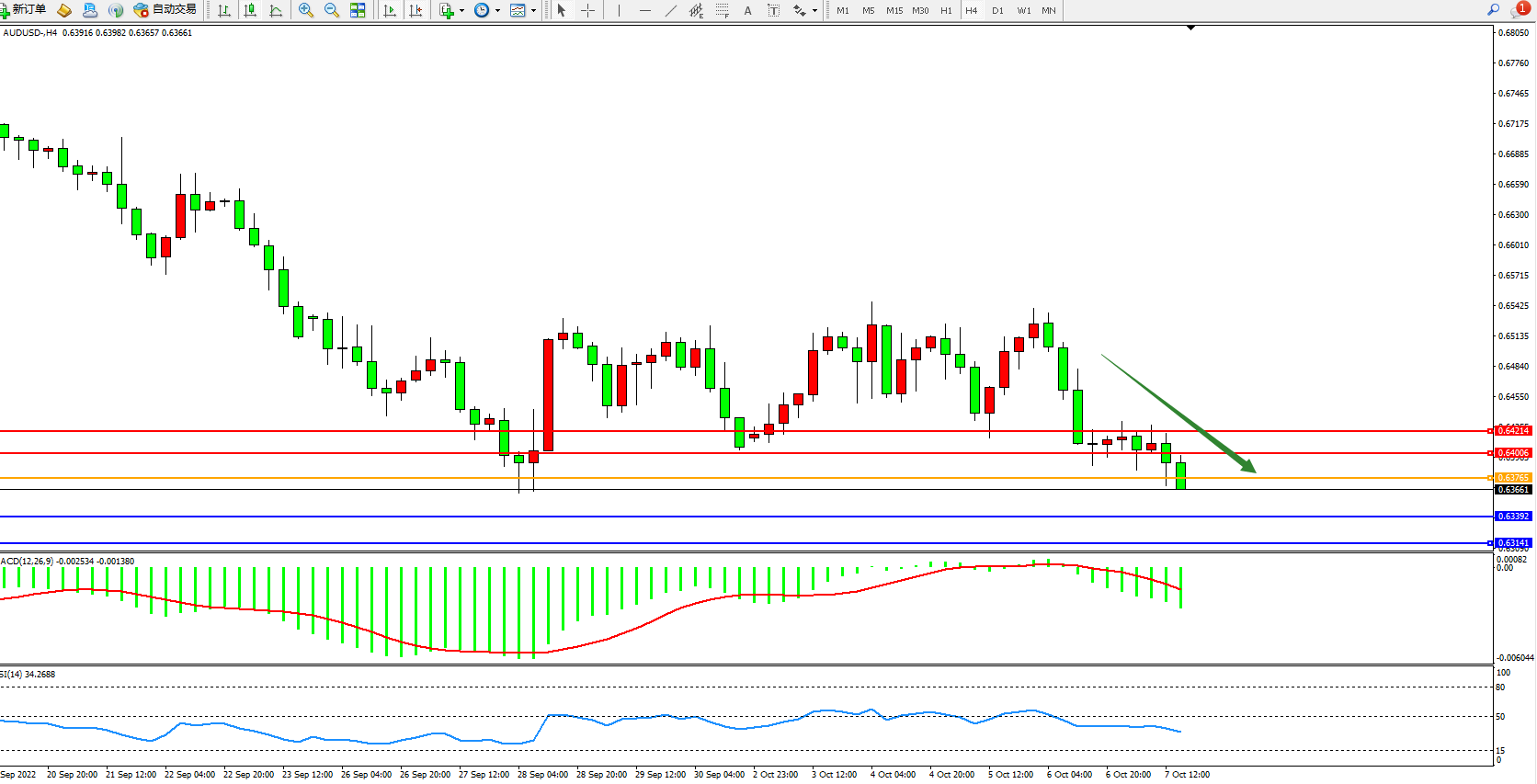 澳元美元AUDUSD——4小时K线图显示: