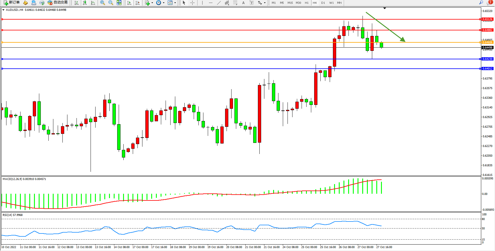 交易策略:0.64606下方看跌,目标0.64230、0.64012