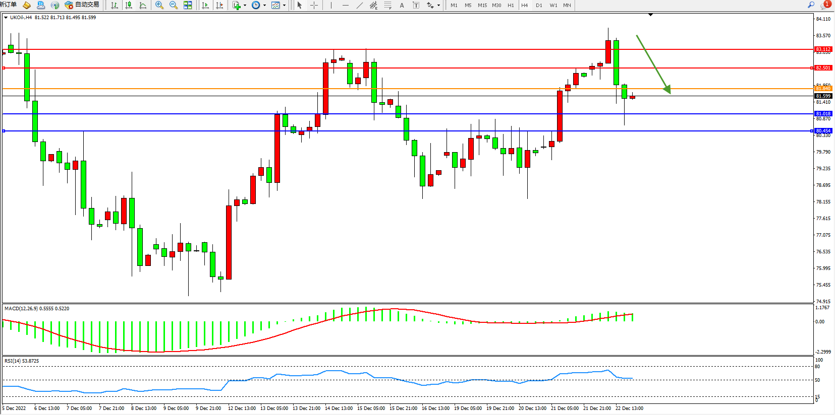 布油UKOil——4小时K线图显示: