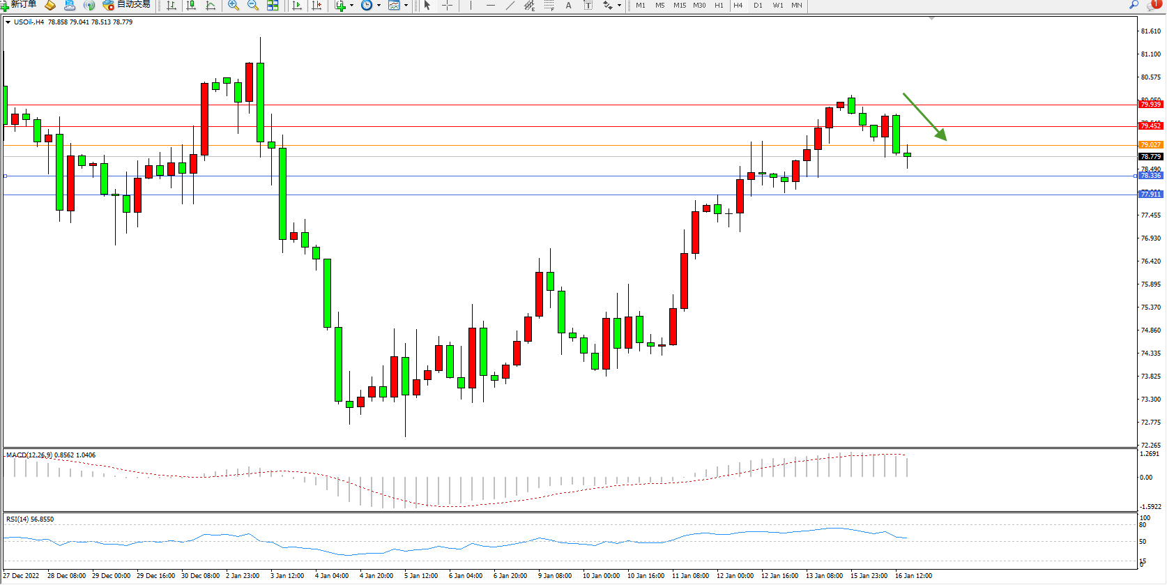 交易策略:79.027下方看跌,目标78.336、77.991