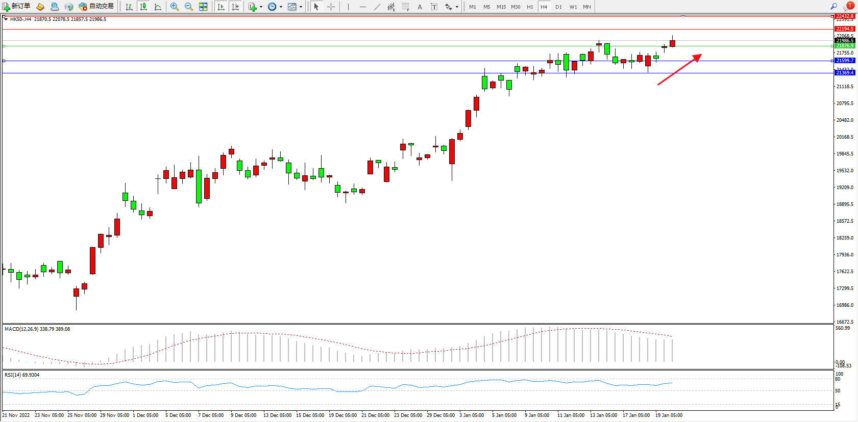 恒指HK50 4小时图