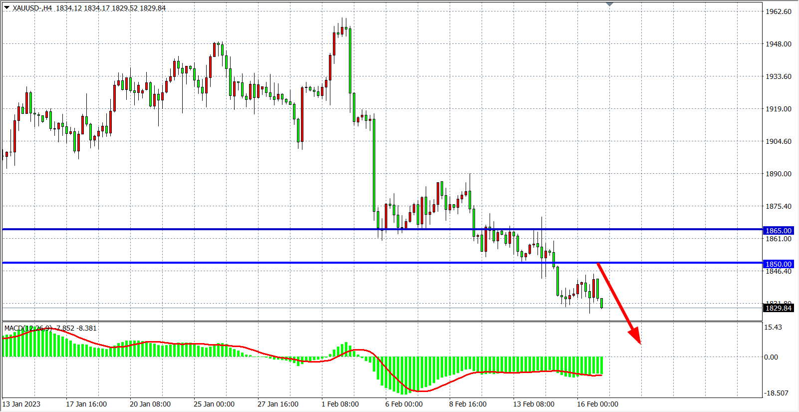 交易策略:在1850.00 之下看跌,目标1830.00         1820.00