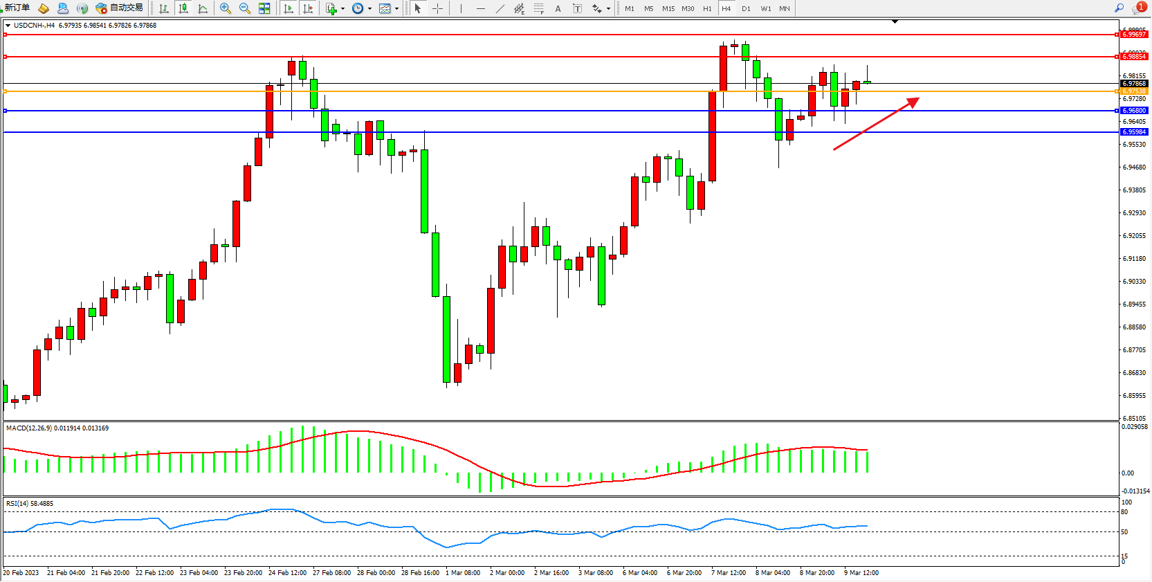 阻力位:6.98854 6.99697