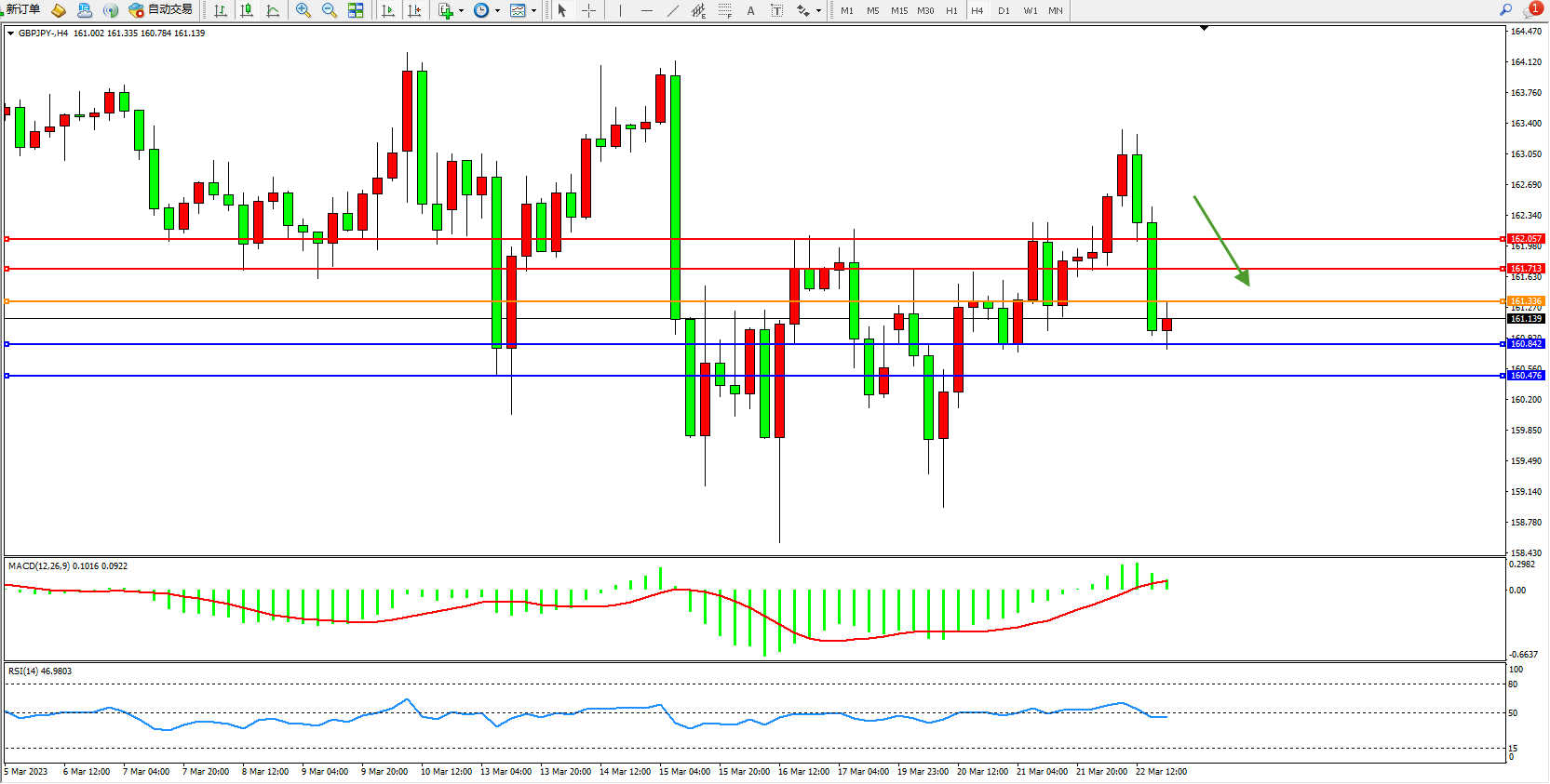 交易策略:161.336下方看跌,目标160.842  160.476